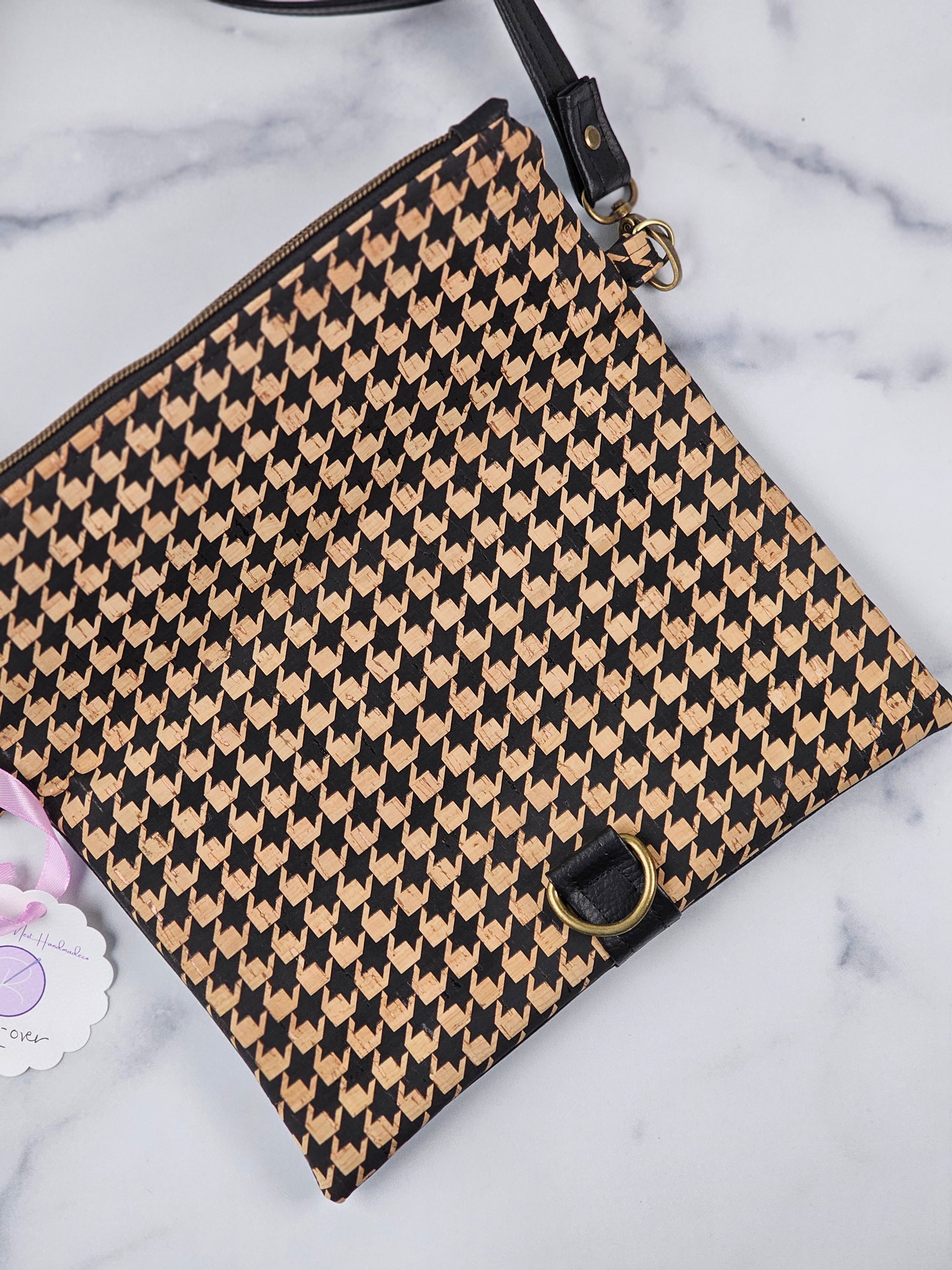 Sophisticated style meets everyday function in this stunning fold-over bag, designed for the modern woman with a full calendar and effortless flair. Made from sleek black faux leather and a classic houndstooth patterned cork, this eye-catching piece adds instant polish to any outfit—whether you're running errands, heading to the office, or meeting friends for dinner.