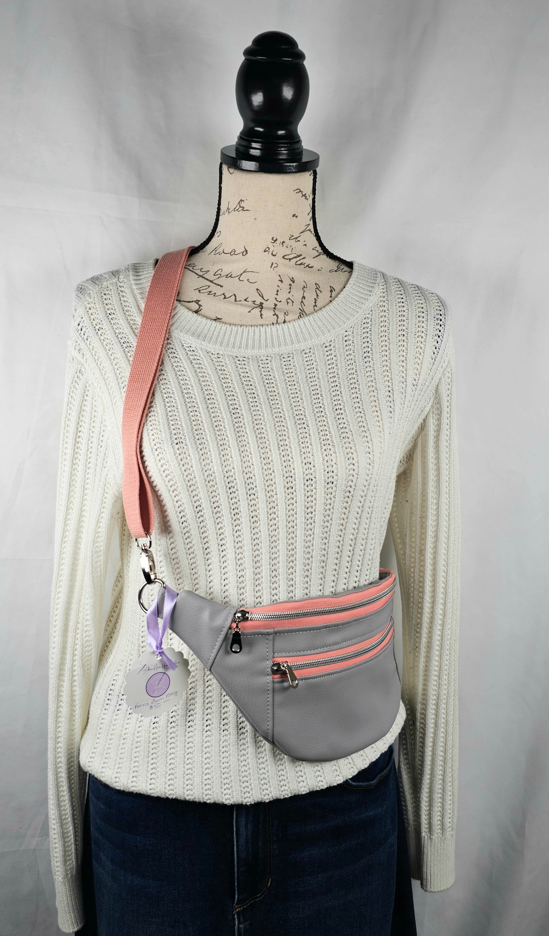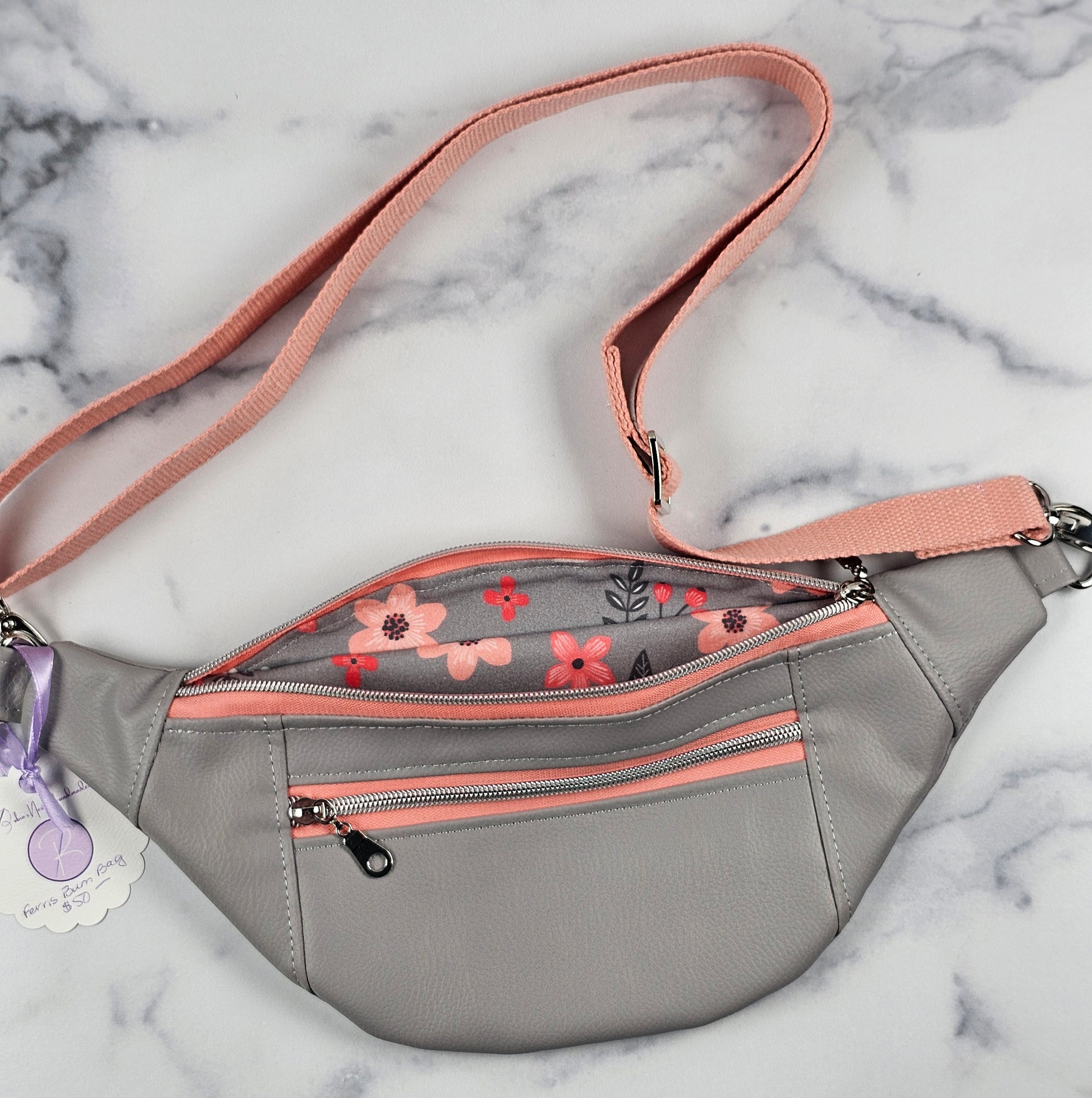 Meet the Ferris Bum Bag - your stylish, hands-free companion for every adventure. Crafted from smooth gray faux leather, this versatile bag pairs modern minimalism with a pop of personality. Inside, you'll find a soft gray and coral floral cotton lining that adds a cheerful surprise every time you unzip it.