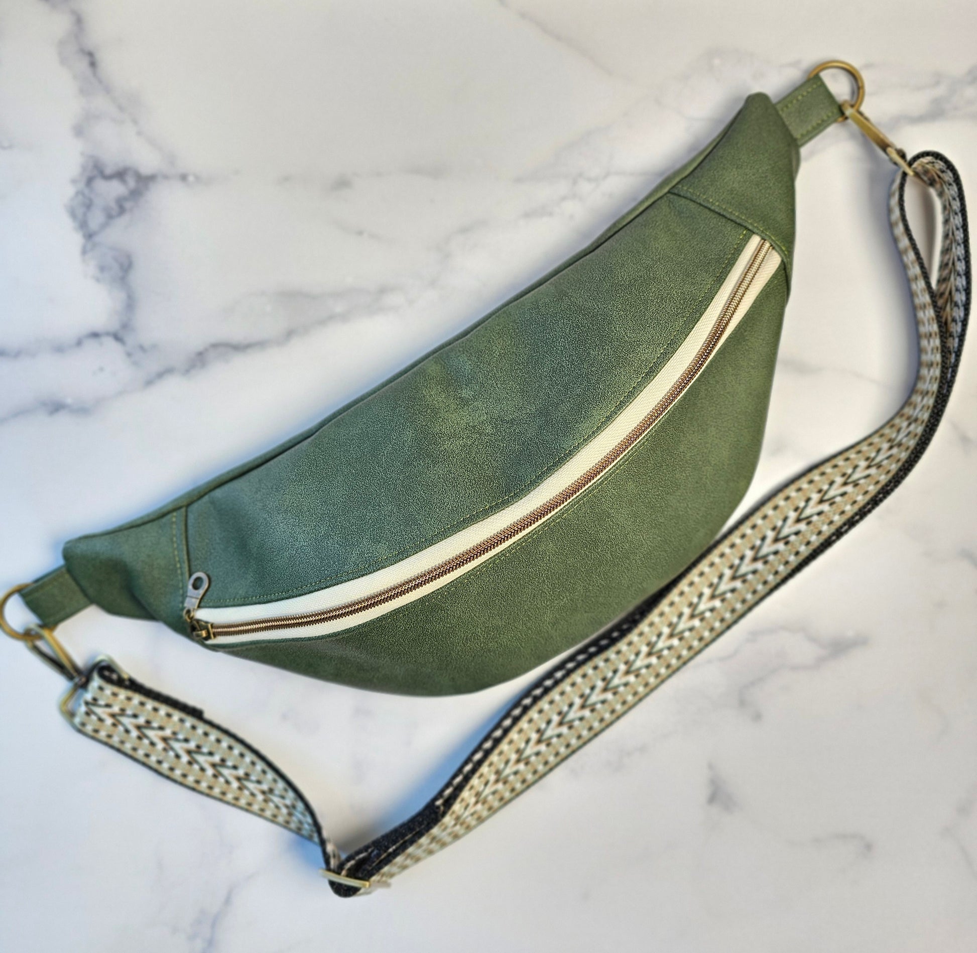 Large Green Faux Leather Bum Bag - Garden Trail Edition